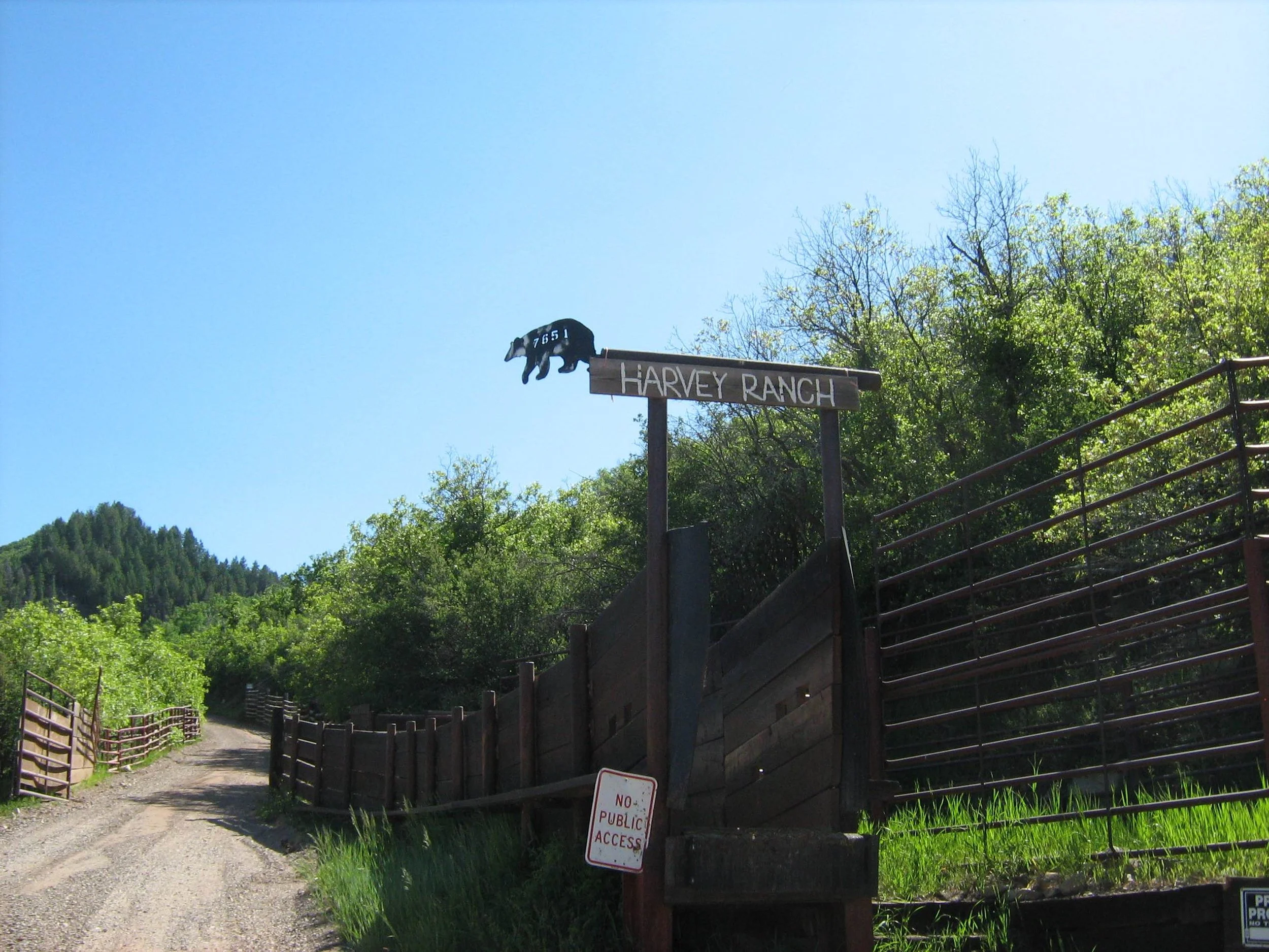 A blue street sign stands above a driveway just off of County Road 11: Harvey Ranch Road. A steep gravel driveway forks to the right and climbs up as I shift my car gears down, driving past the “No Public Access” sign. I am a part of the third generation of Harveys to cross the boundary. Aspens and evergreens line one side of the driveway and scrub oak dots the other. At the top of the first hill are two log cabin ranch houses, a patient line of heavy-duty machinery, and a corral where six horses stand. Early in the morning, the horses are still out in the grassy pasture further up the gravel road, where they would grow fat and wild if left out all day. Above the houses is one of the many gates that keep the cattle where they are supposed to be while they graze throughout the summer and early fall.
